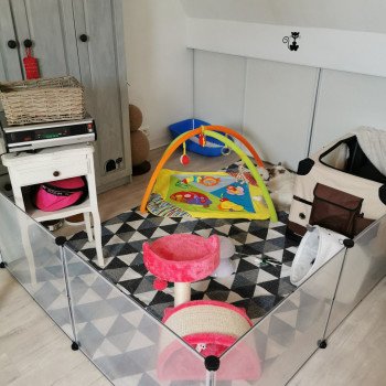 Notre maison à la chance d'être configurée de façon à ce que nos femelles partagent notre quotidien via des pièces dédiées, d'un local aménagé de 20m2 ,d'une extension extérieure de 20m2 et d'un enclos extérieur sécurisé.